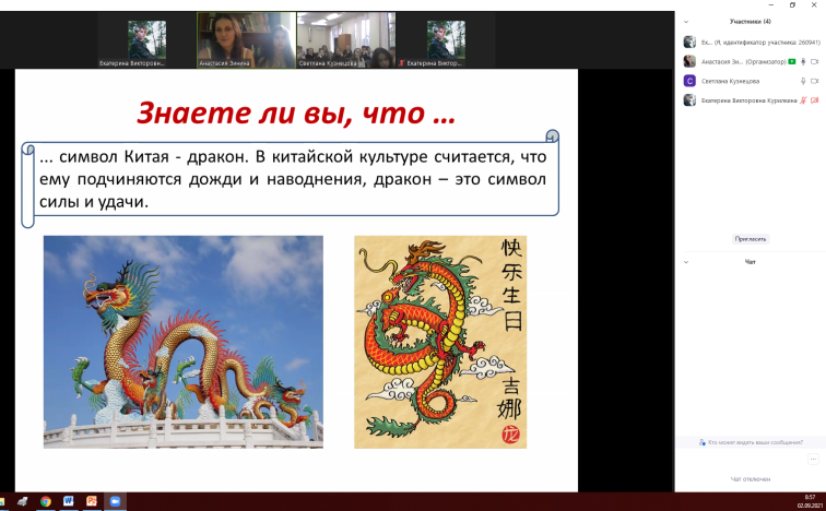 Для обучающихся МБОУ «Лицей №72» (г. Кстово) был организован интерактивный урок китайского языка, направленный на знакомство с китайской культурой и происхождением иероглифов. Школьники научились представляться и считать на китайском языке, приняли участие в конкурсе на угадывание известных мировых брендов на китайском языке и интересной викторине на выявление уровня усвоения и закрепление полученных знаний.
