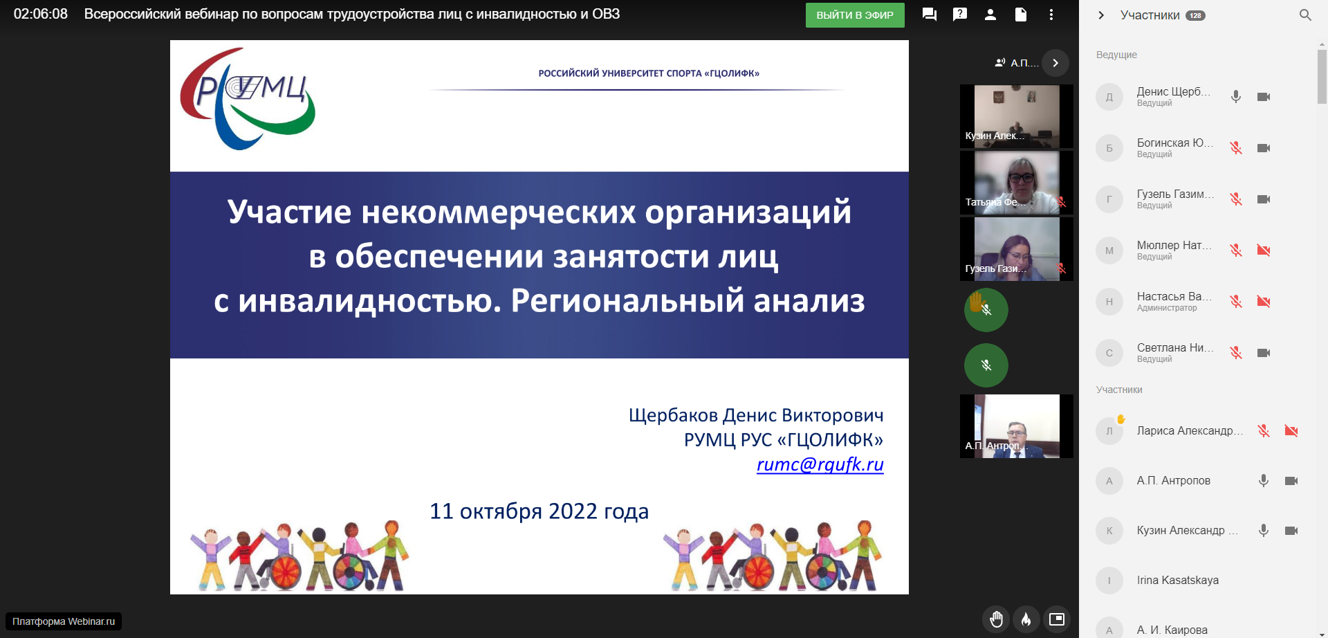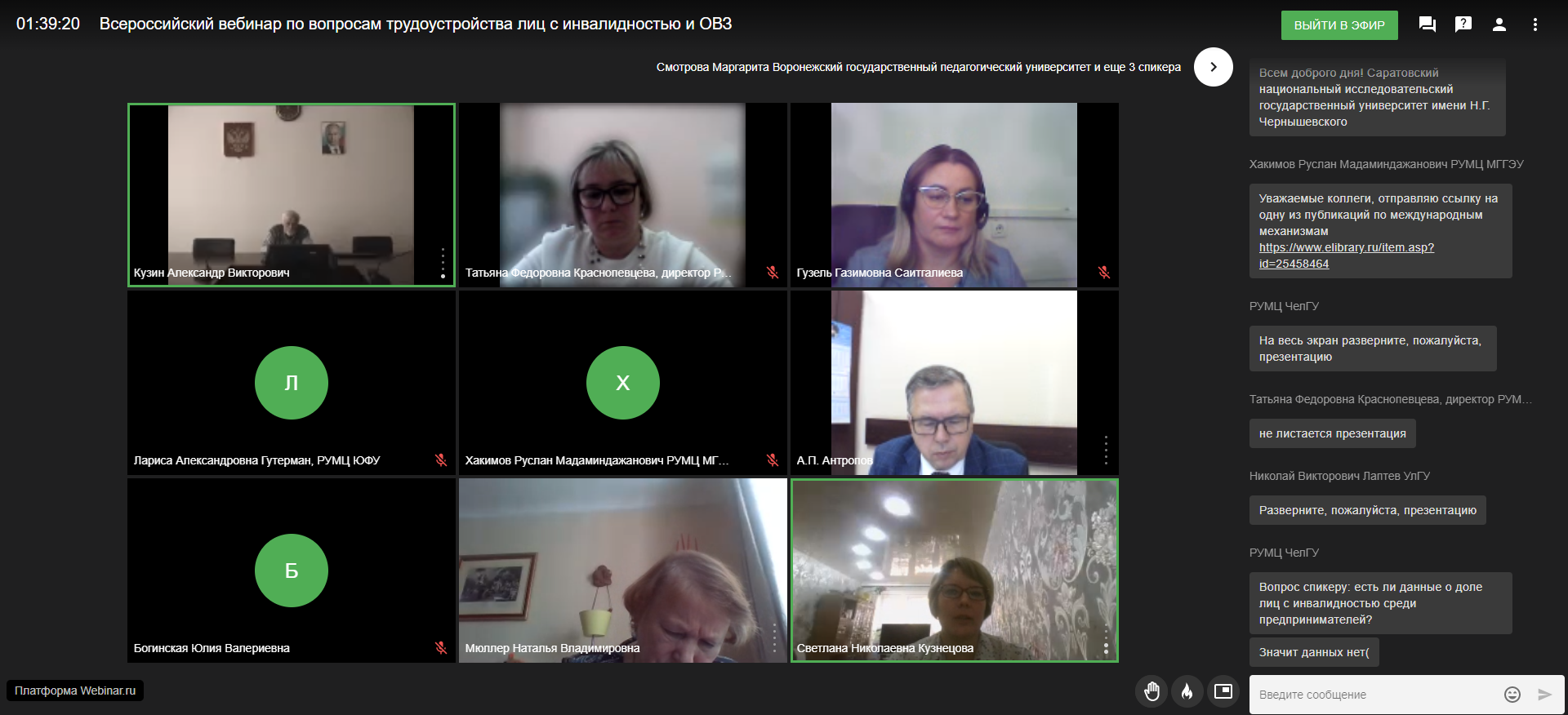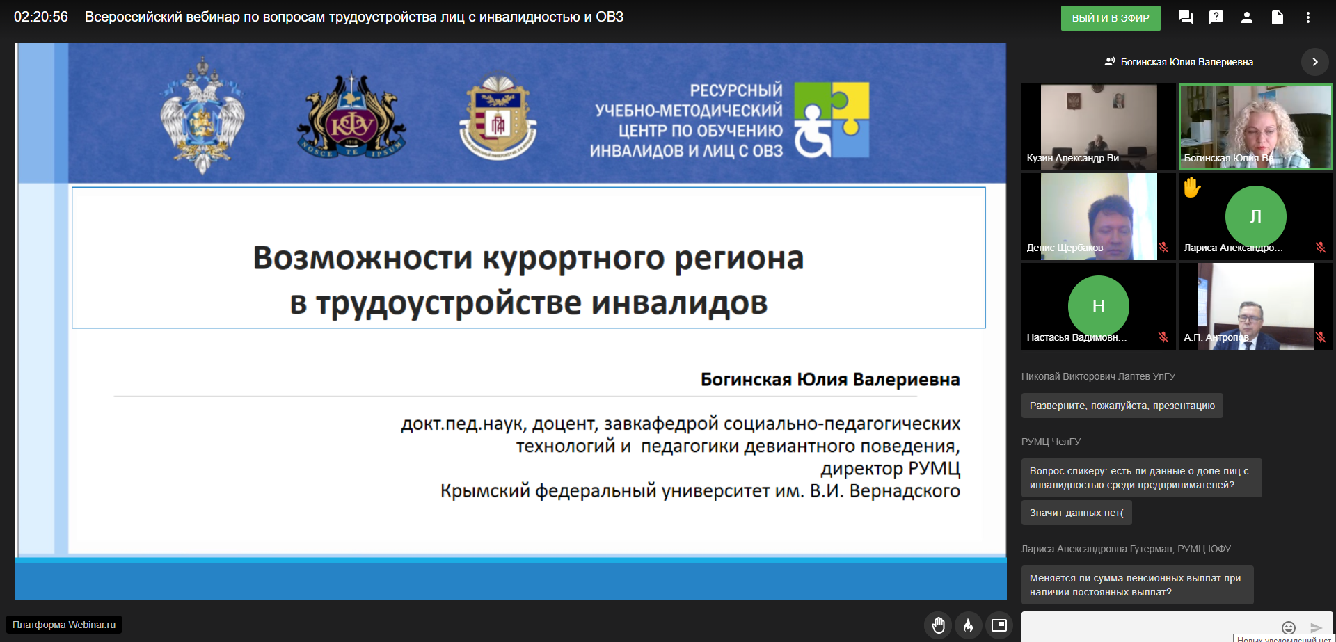 Сеть ресурсных учебно-методических центров по обучению инвалидов и лиц с ОВЗ провела сетевой вебинар по трудоустройству лиц с инвалидностью в России