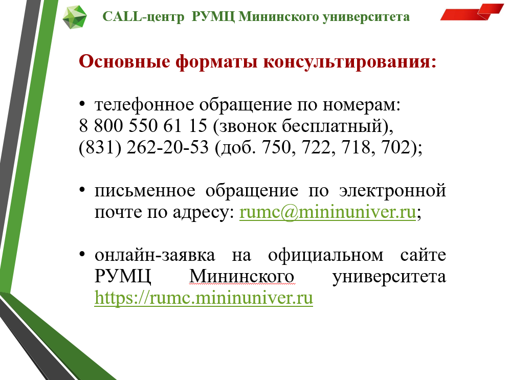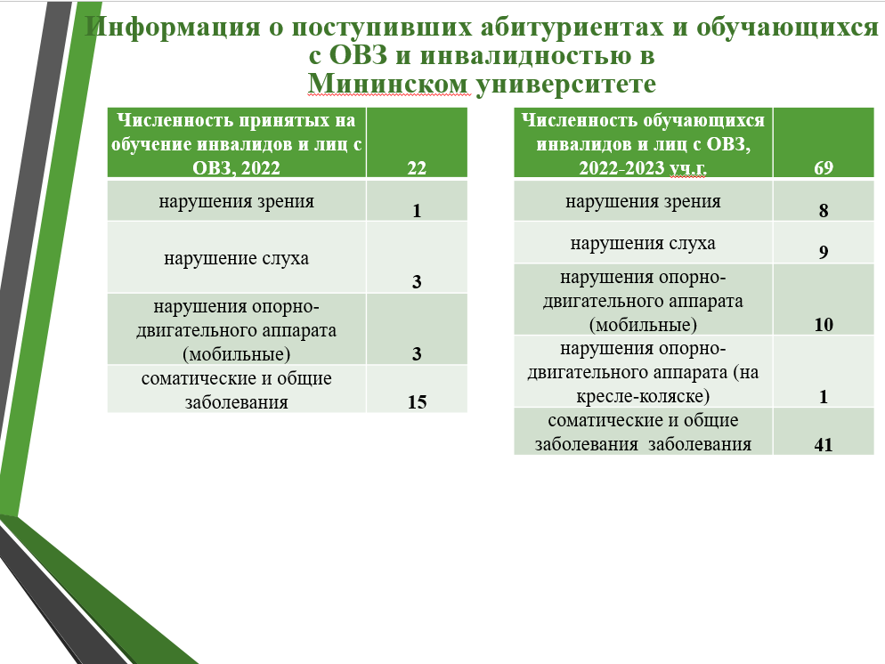 Винокурова Ирина Викторовна, заместитель директора РУМЦ Мининского университета, Мельникова Галина Тимофеевна, ответственный секретарь приёмной комиссии Мининского университета представили информацию о деятельности центра, горячей линии, оказывающей консультационную поддержку по вопросам инклюзивного высшего образования, представили опыт обучения ребят с особыми образовательными потребностями, об особенностях проведения вступительных испытаний для абитуриентов с ОВЗ и инвалидностью, о направлениях подготовки/профилях обучения, а также ознакомление с перечнем профессий, на которые возможно трудоустройство по окончании обучения в вузе.