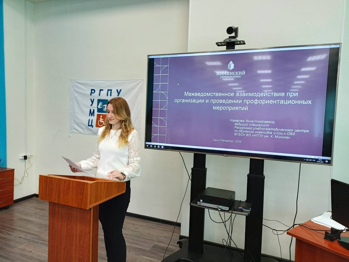 В рамках мероприятия было организовано обсуждение тенденций и перспектив развития инклюзии в вузах, особенностей организации и проблемных аспектов инклюзивного высшего образования, а также возможностей межведомственного взаимодействия в развитии инклюзивного высшего образования и основные направления сетевого сотрудничества по сопровождению профориентации школьников с инвалидностью.