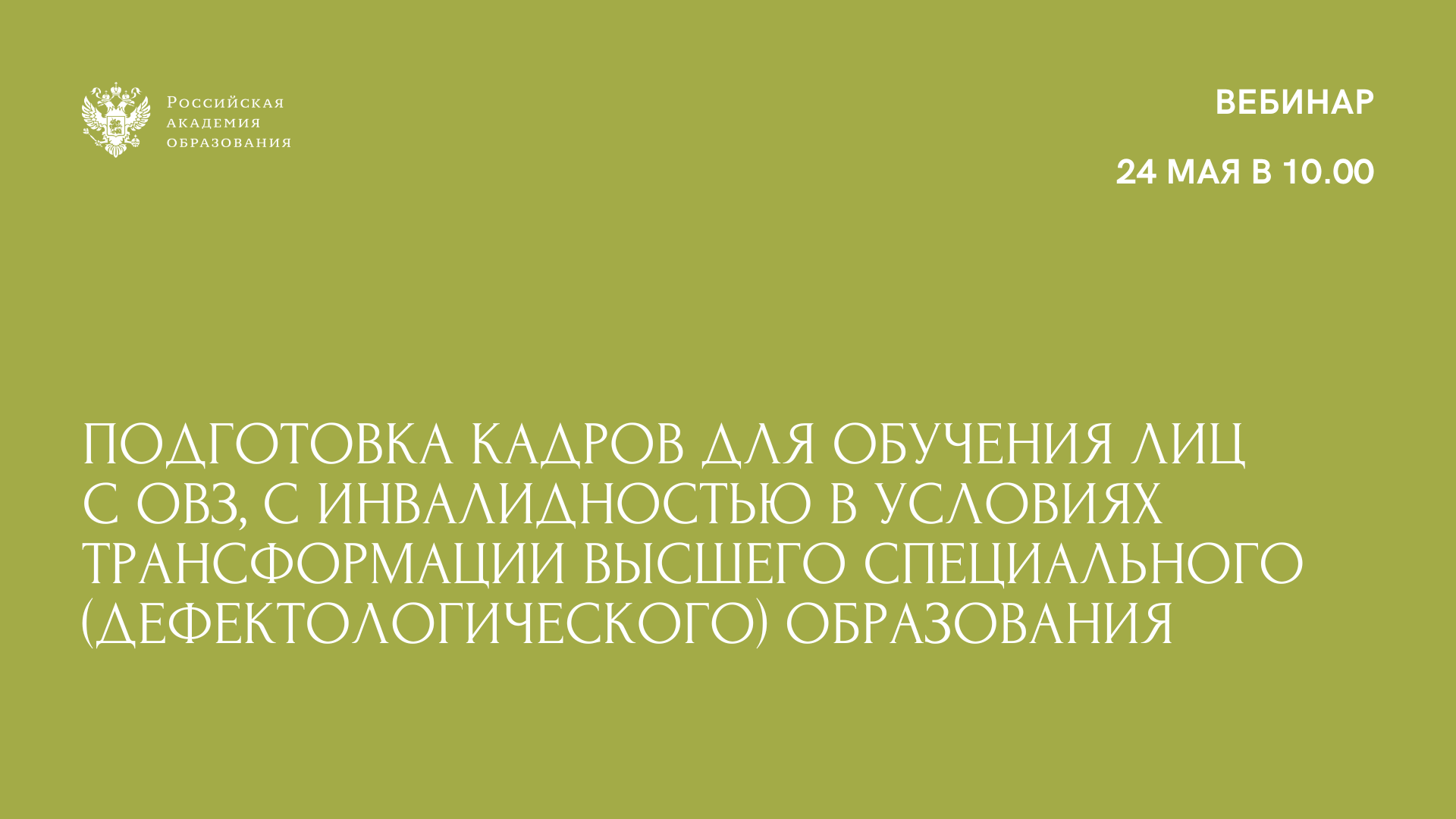 24 мая 2023 года в Российской академии образования состоялся вебинар «Подготовка кадров для обучения лиц с ОВЗ, с инвалидностью в условиях трансформации высшего специального (дефектологического) образования», организованный Центром развития инклюзивного образования РАО.