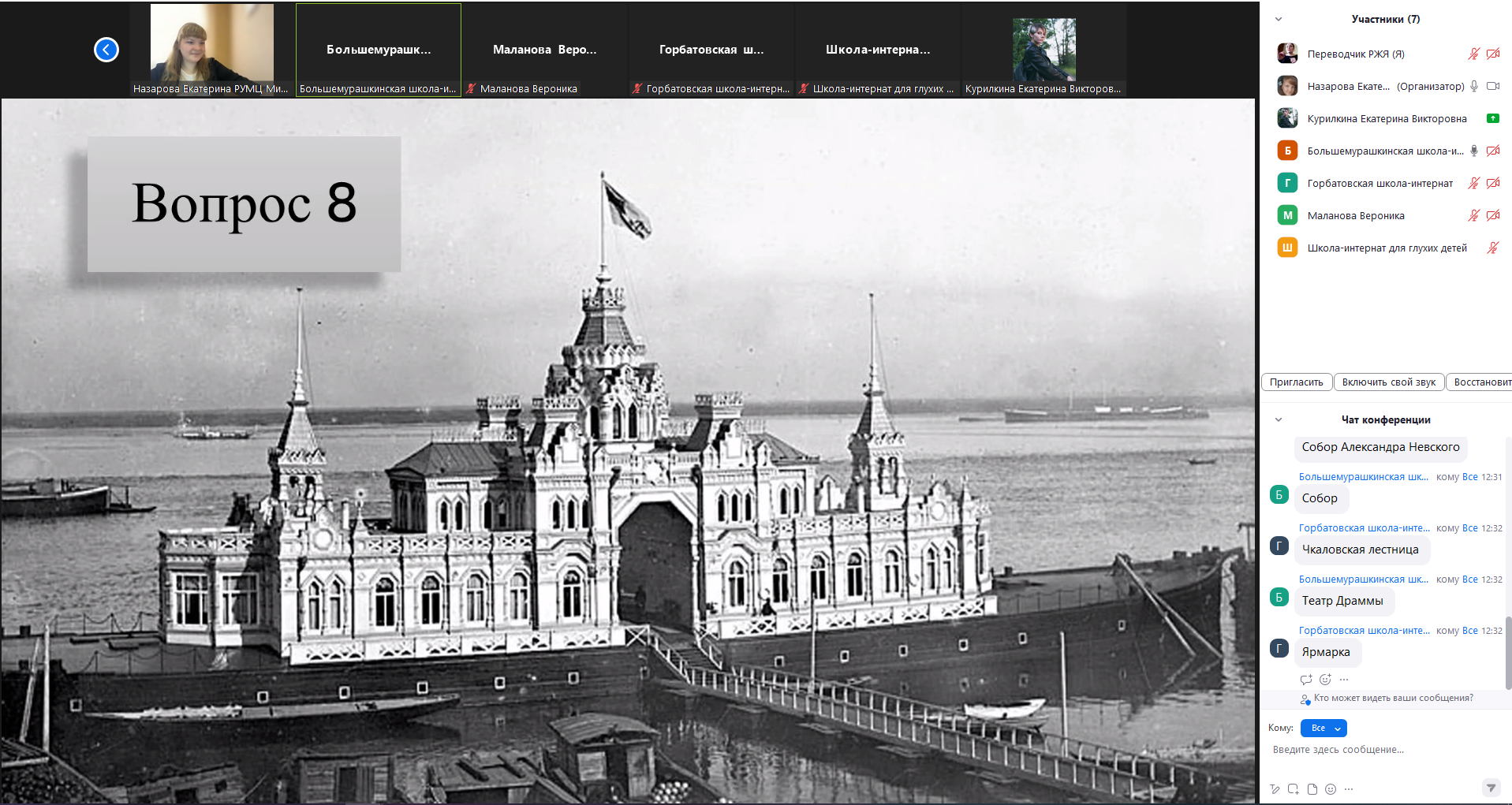 Обучающиеся с ОВЗ и инвалидностью специальных (коррекционных) школ и школ-интернатов (ГКОУ «Большемурашкинская областная специальная (коррекционная) общеобразовательная школа-интернат для слабослышащих и позднооглохших детей», Государственное казенное общеобразовательное учреждение «Горбатовская областная специальная (коррекционная) общеобразовательная школа-интернат для глухих и позднооглохших детей», Муниципальное казенное общеобразовательное учреждение «Школа-интернат для глухих детей») охотно отвечали на интересные вопросы онлайн-игры.