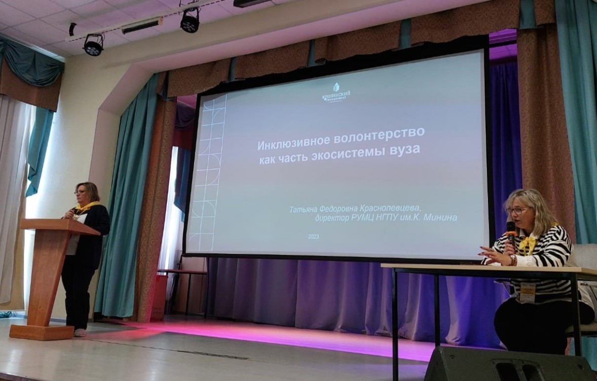 В рамках Трека проектной сессии «Социальное проектирование инклюзивных волонтерских инициатив: опыт, мотивация, механизмы, инструменты, проблемы и пути их решения, лучшие практики» директор РУМЦ Мининского университета Краснопевцева Татьяна Федоровна поделилась опытом Мининского университета в развитии инклюзивного волонтерства, формировании мотивации и поддержки волонтеров студенческого корпуса и выступила с докладом на тему «Инклюзивное волонтерство как часть экосистемы вуза».