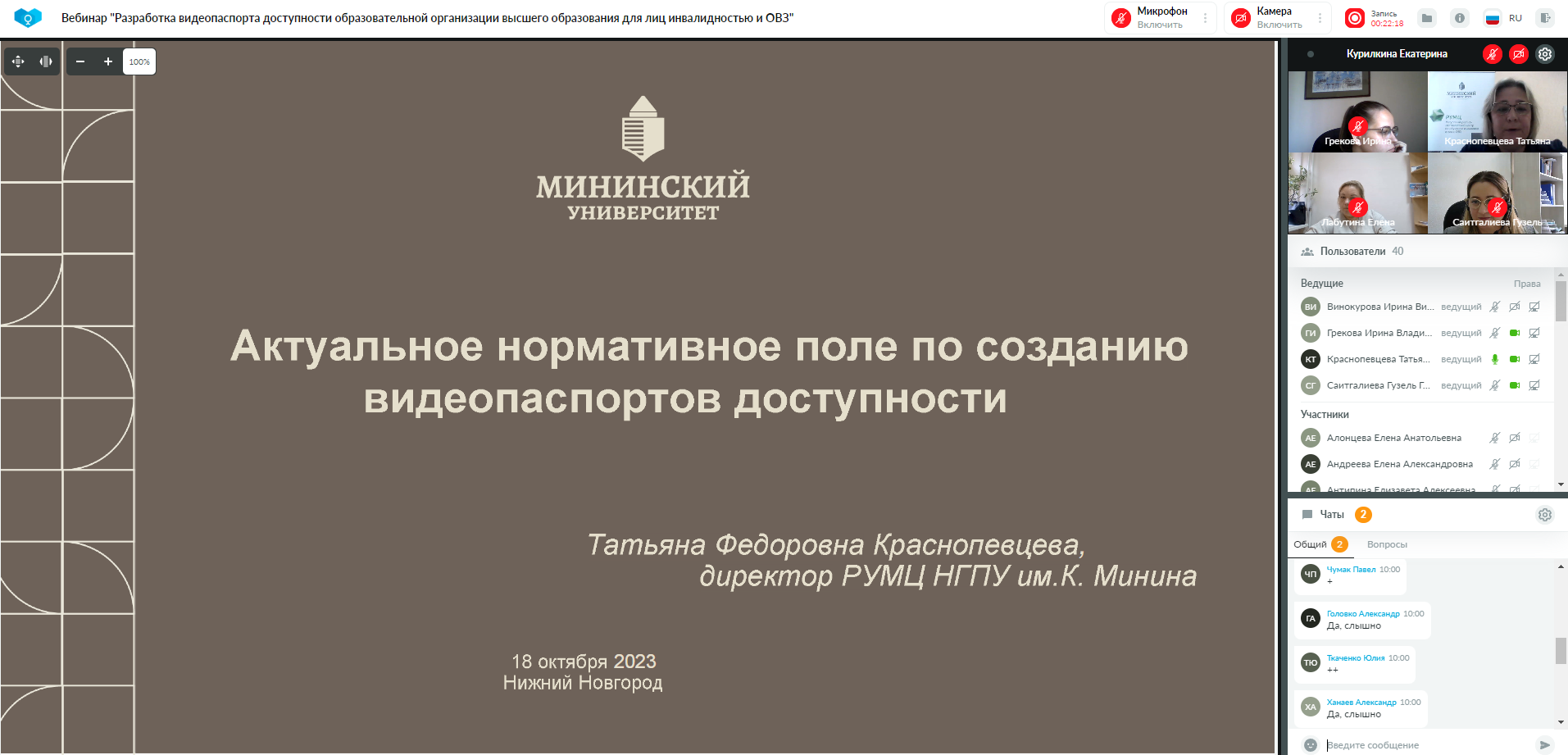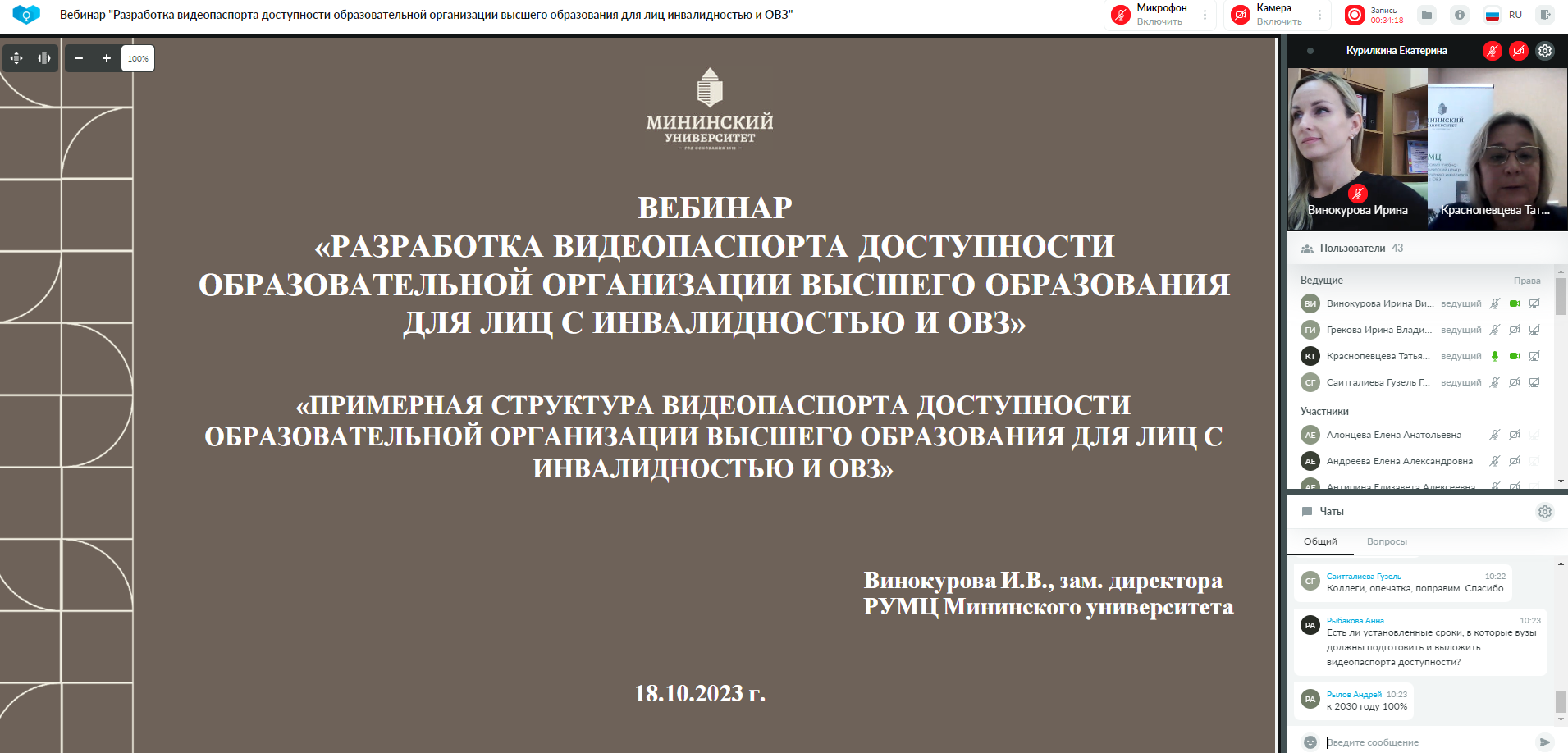 - РУМЦ Мининского университета совместно с РУМЦ Южного федерального университета провели вебинар по подготовке видеопаспорта доступности образовательной организации высшего образования для лиц инвалидностью.