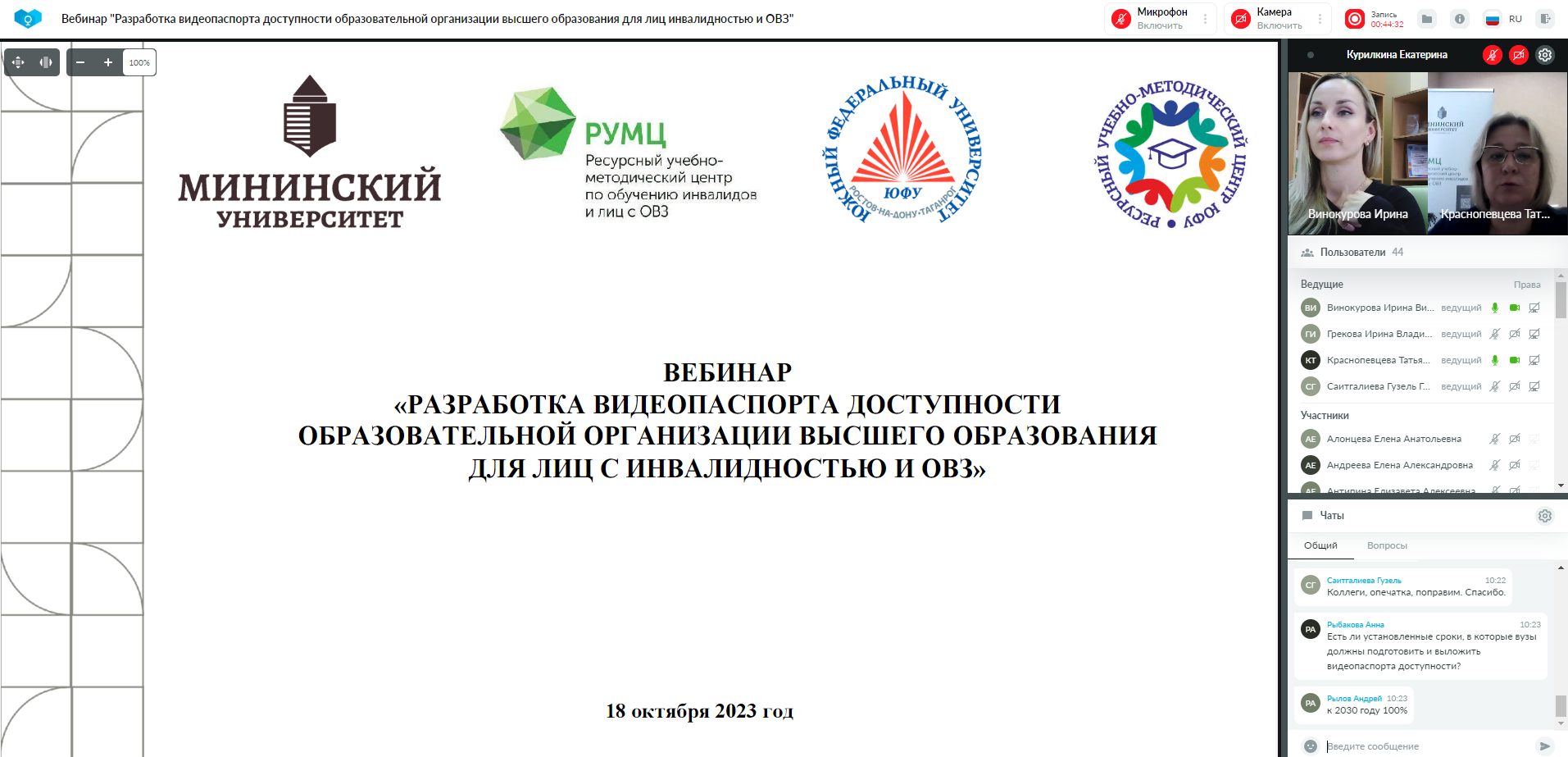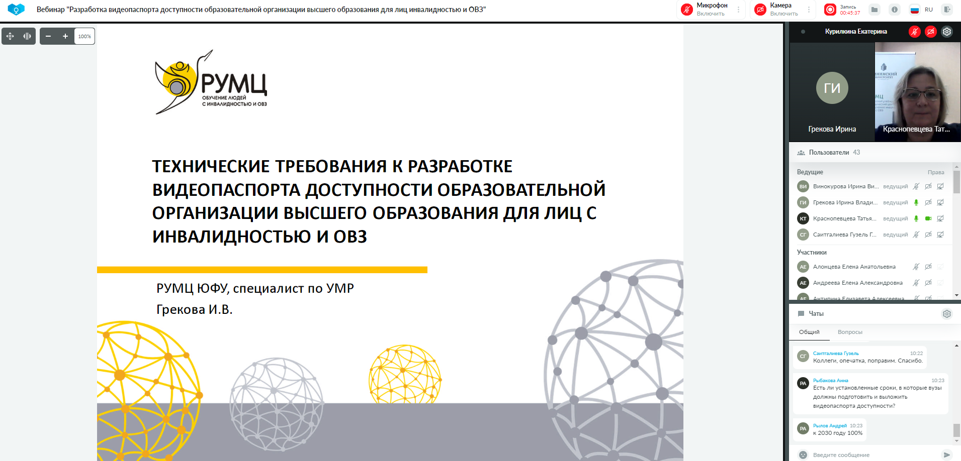 РУМЦ Мининского университета совместно с РУМЦ Южного федерального университета провели вебинар по подготовке видеопаспорта доступности образовательной организации высшего образования для лиц инвалидностью.