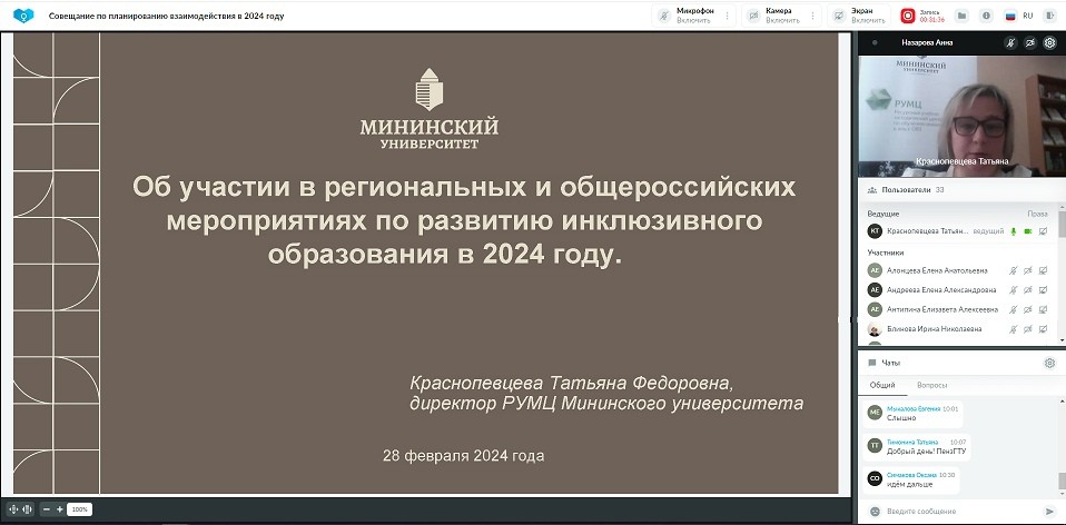 РУМЦ Мининского университета в рамках взаимодействия с образовательными организациями высшего образования, находящимися на подведомственной ему территории и подписавших соглашения с РУМЦ, 28 февраля 2024 года организовал совещание по планированию взаимодействия в 2024 году по вопросам повышения доступности и качества высшего образования для лиц с ОВЗ и инвалидностью.