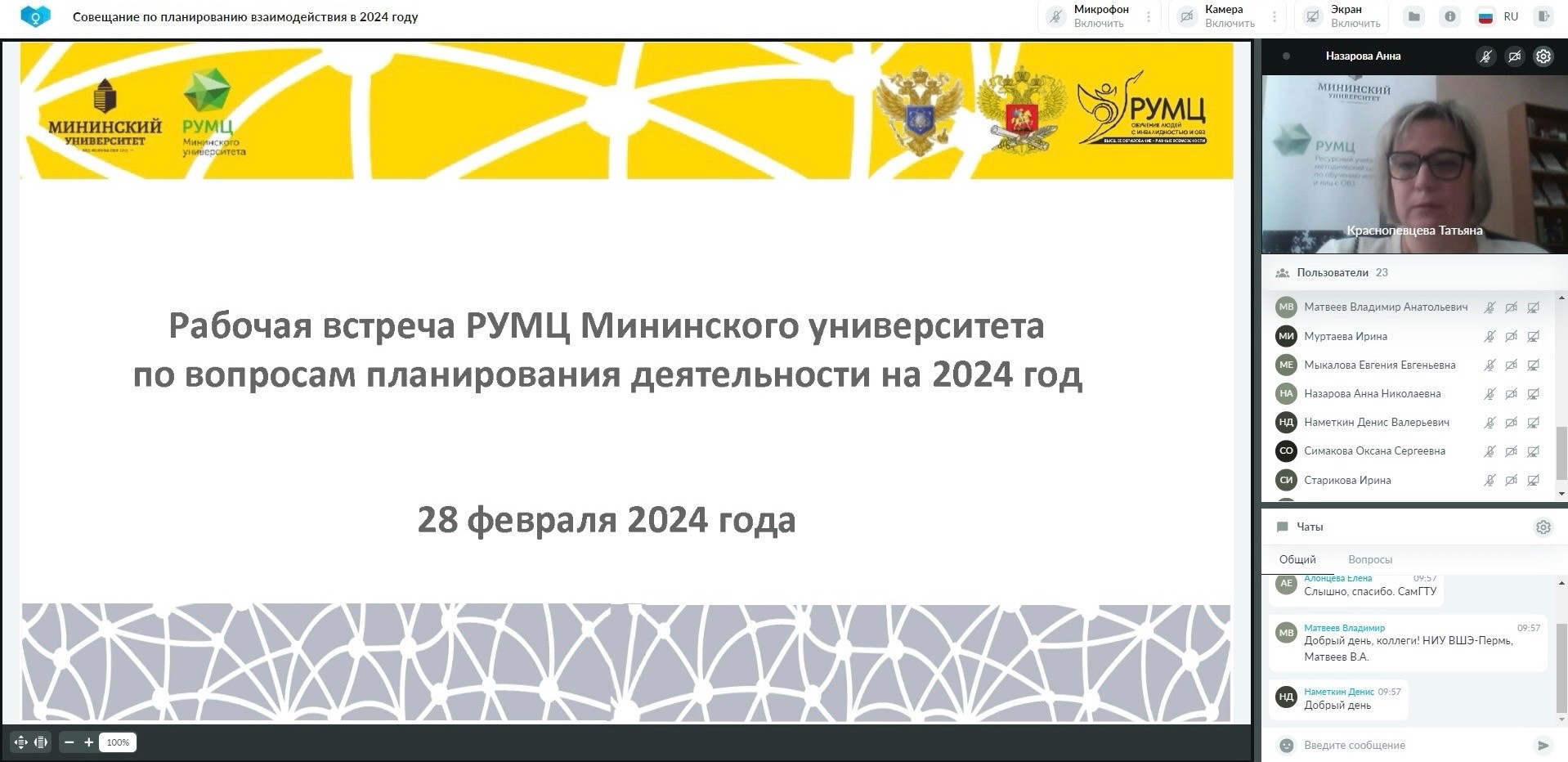 РУМЦ Мининского университета провел рабочее совещание с вузами-партнерами по планированию взаимодействия в 2024 году