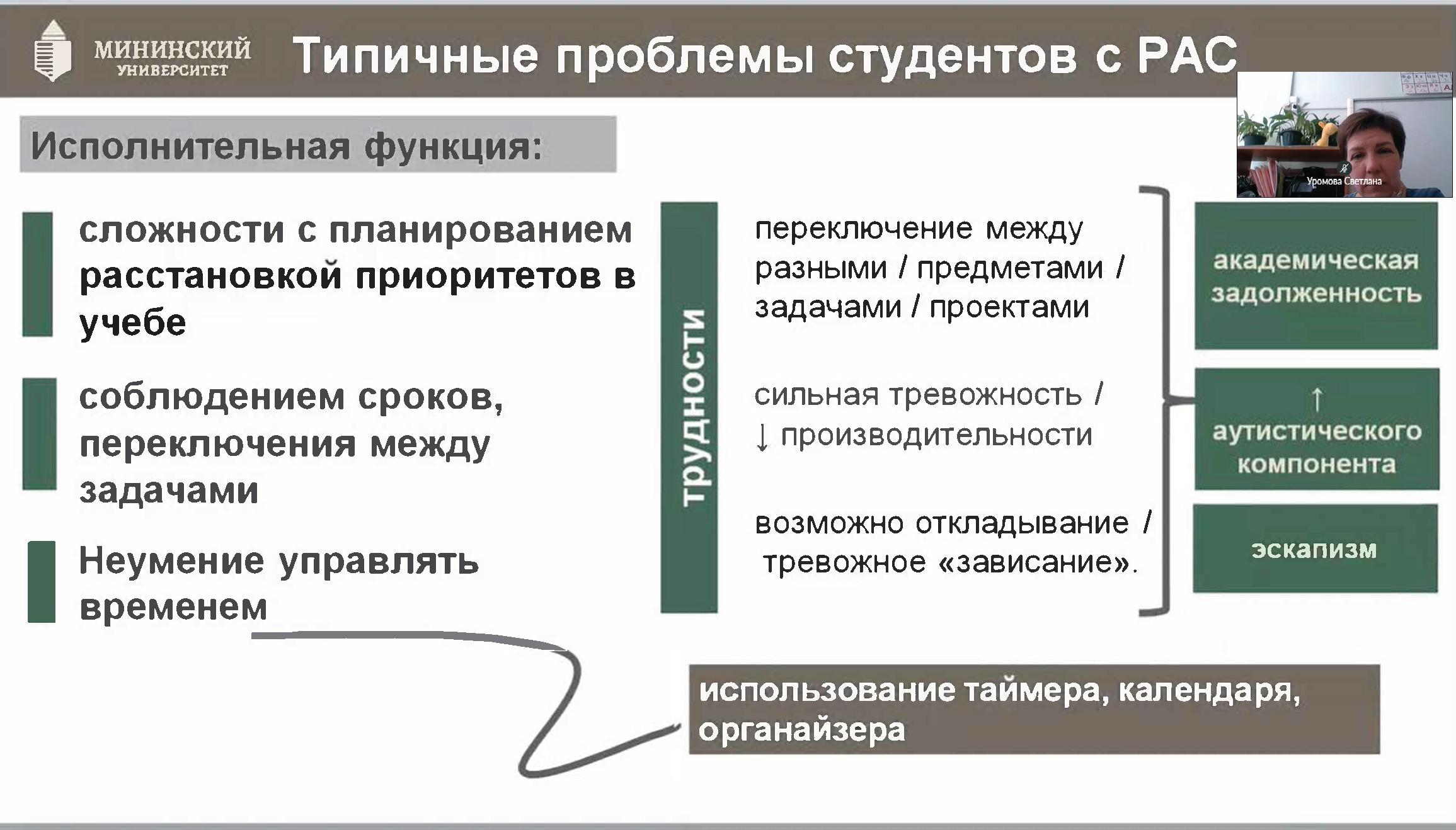 Модераторами семинаров выступили представители РУМЦ Мининского университета, спикерами стали представители кафедры специальной педагогики и психологии: