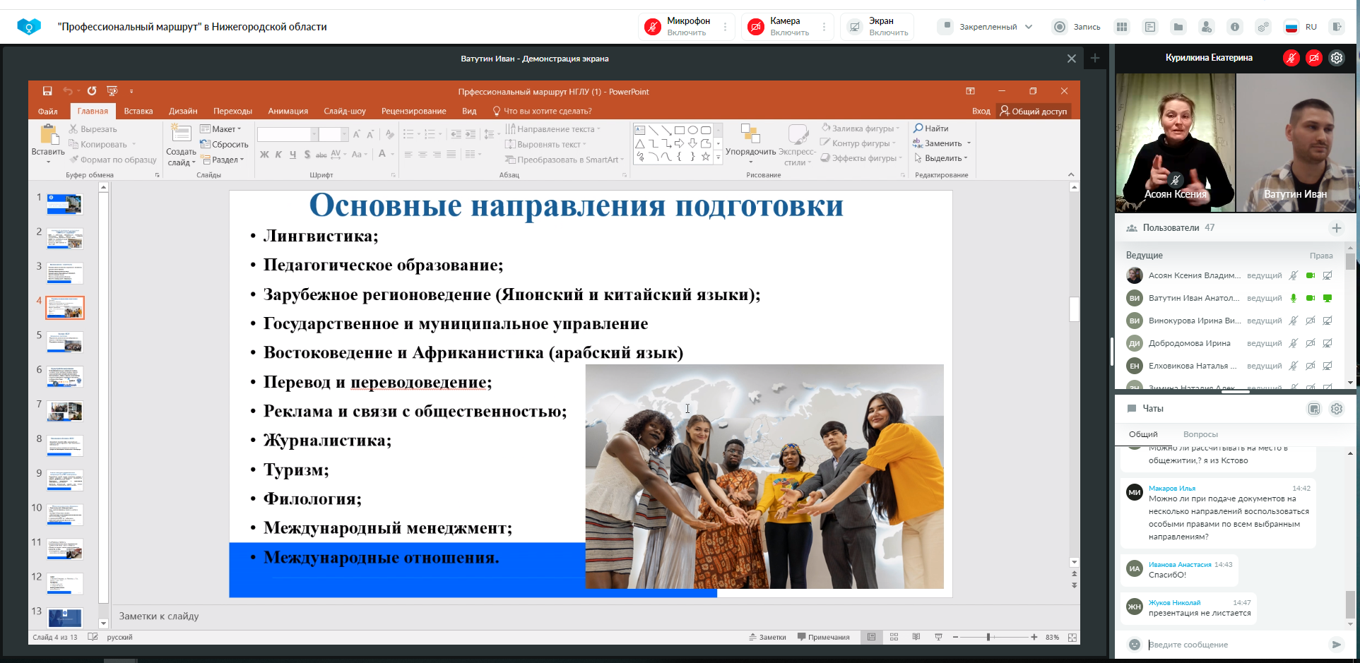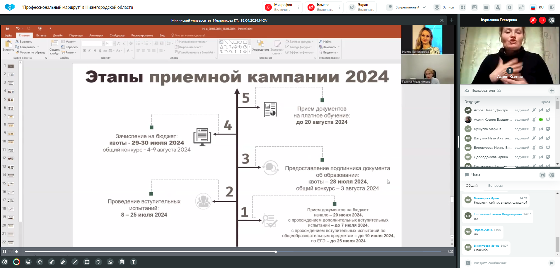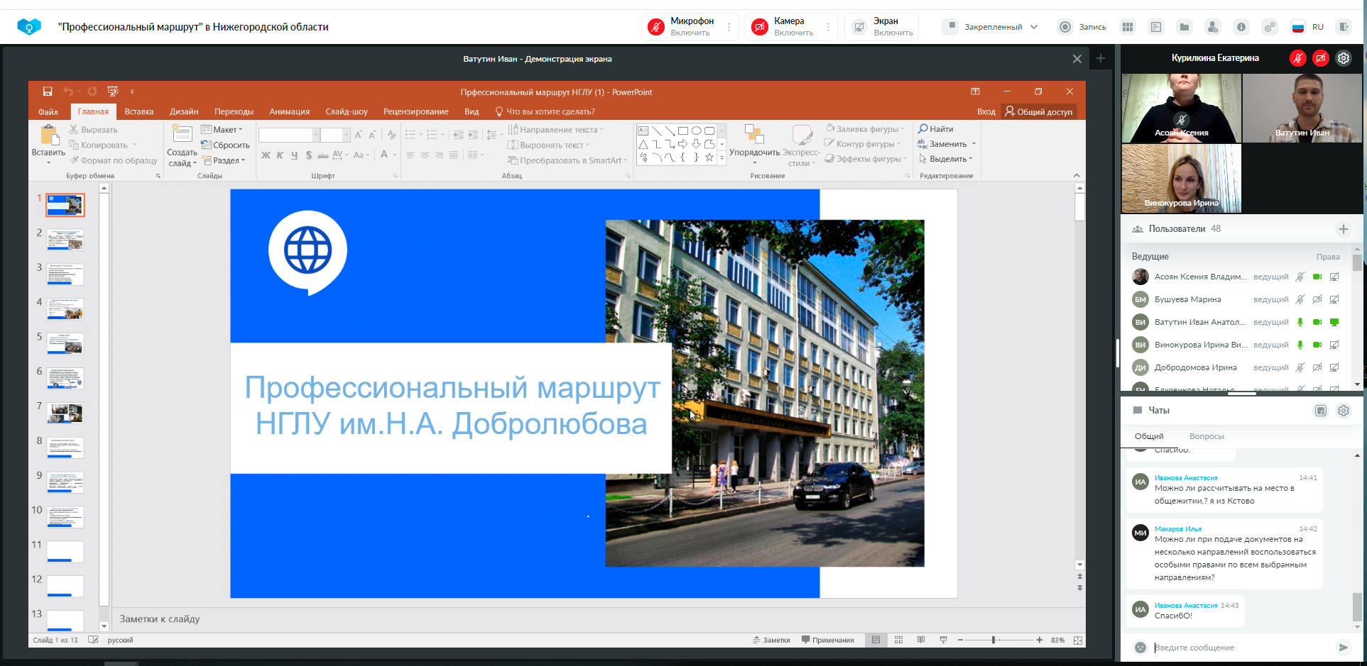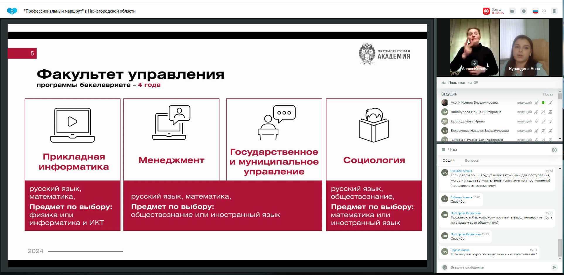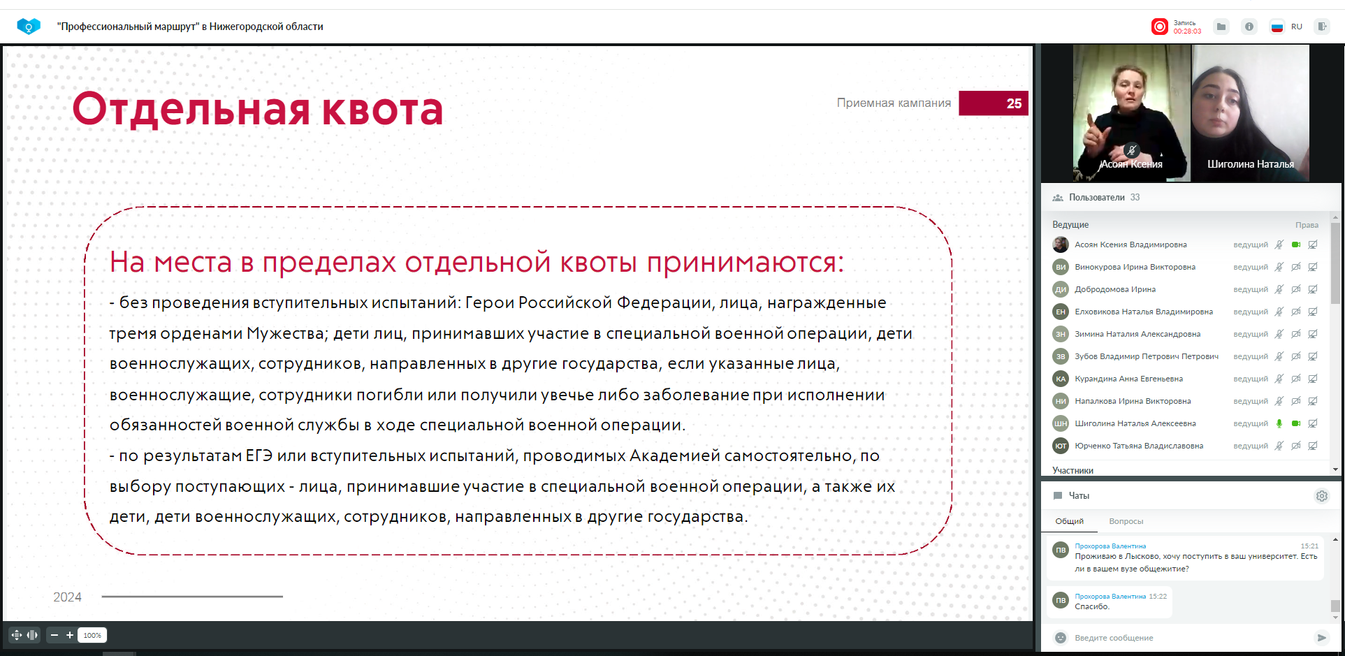 В ходе мероприятия ответственные лица каждого университета предоставили информацию о специальных условиях обучения лиц с ОВЗ и инвалидностью в вузе, о направлениях подготовки/профилях обучения в университете, познакомили с профессиями, на которые возможно трудоустройство по окончанию обучения в вузе.