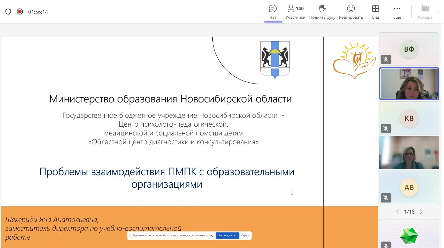 Проблематику основных аспектов взаимодействия ПМПК с образовательными организациями представила Шекериди Яна Анатольевна, заместитель директора по учебно-воспитательной работе, Государственное бюджетное учреждение Новосибирской области «Областной центр диагностики и консультирования».