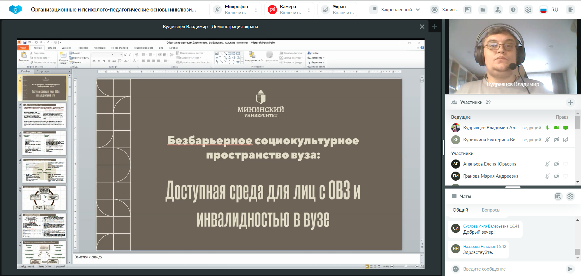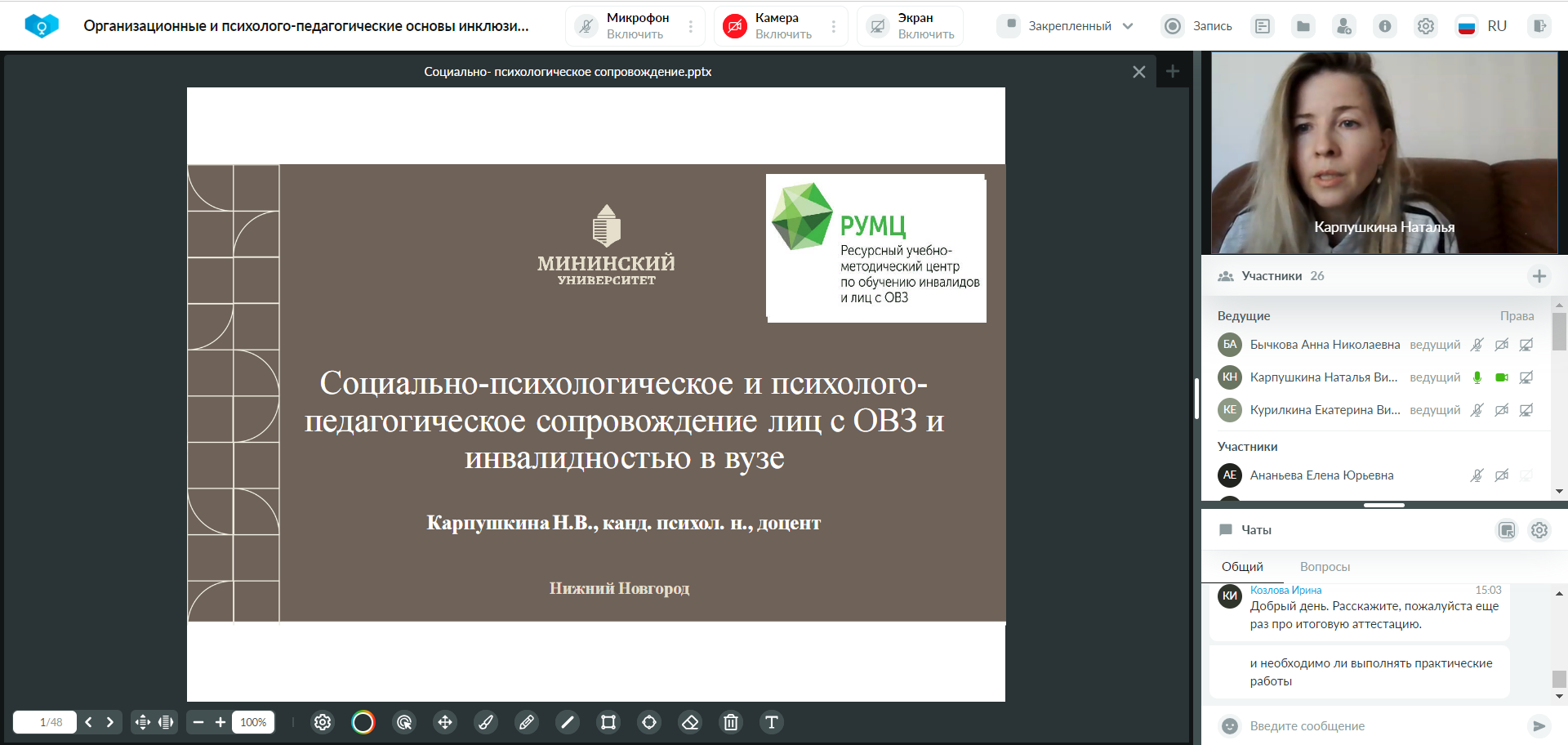 Завершилось обучение по программе повышения квалификации «Организационные и психолого-педагогические основы инклюзивного высшего образования» сотрудников вузов-партнеров