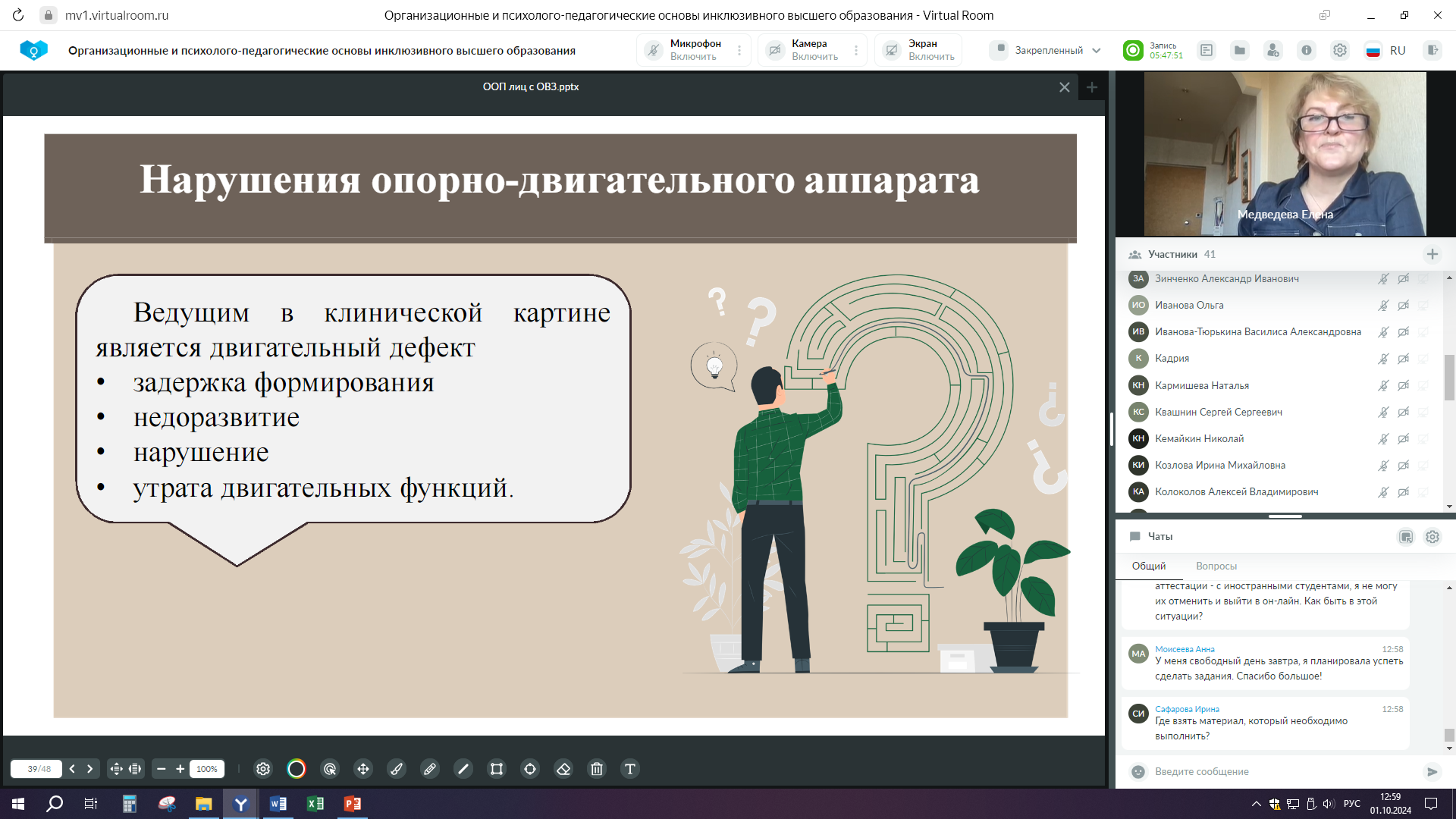 Обучение по программе проходило в период с 16 сентября 2024 года по 4 октября 2024 года в очно-заочном формате с использованием дистанционных образовательных технологий. Реализация программы повышения квалификации предусматривала различные формы работы слушателей и проведения занятий. Занятия очного этапа проводились в онлайн формате в экспертно-лекционной форме, форме практической (проектной) работы, а также самостоятельной работы слушателей.