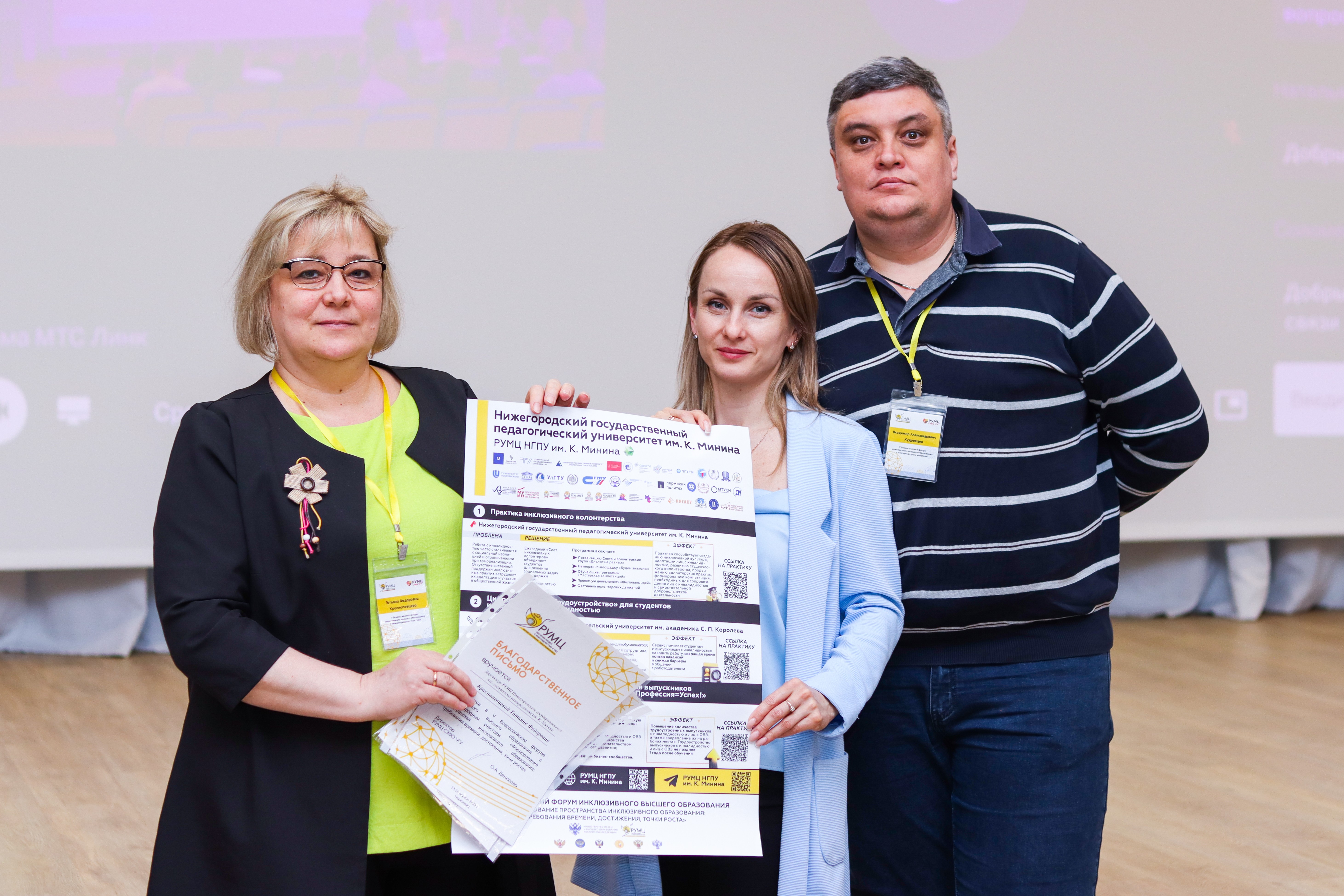 В числе лучших инклюзивных практик директор РУМЦ Мининского университета Краснопевцева Татьяна Федоровна, заместитель директора РУМЦ Мининского университета Винокурова Ирина Викторовна представили Практику инклюзивного волонтерства ФГБОУ ВО «Нижегородский государственный педагогический университет им.К.Минина», а также практики вузов-партнеров РУМЦ Мининского университета: Цифровой сервис «Трудоустройство» для студентов и выпускников с инвалидностью (Самарский национальный исследовательский университет имени академика С.П. Королева), Программа постдипломного сопровождения выпускников из числа инвалидов и лиц с ОВЗ: «Туризм=Профессия=Успех!» (ФГБОУ ВО «Пензенский государственный университет»).