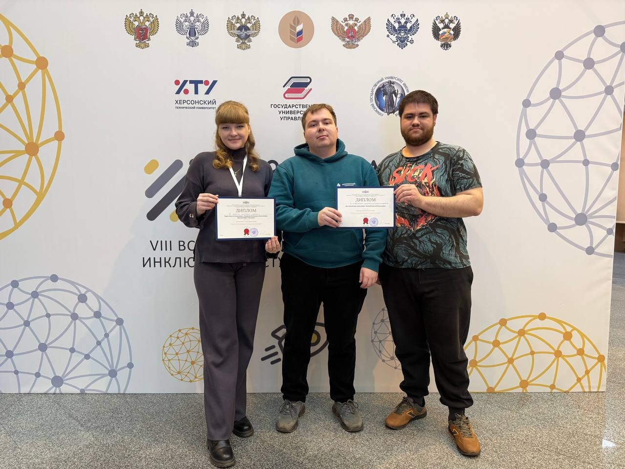 Студенты факультета управления и социально-технических сервисов Мининского университета Назарова Екатерина Николаевна, Фролов Юрий Сергеевич и Горев Никита Алексеевич под руководством директора РУМЦ Мининского университета Краснопевцевой Татьяны Федоровны, заместителя директора РУМЦ Мининского университета Винокуровой Ирины Викторовны представили на конкурсе социальный проект «Интеллектуальная гостиная “Вектор инклюзии”», который отмечен диплом в специальной номинации «За наличие апробации проекта».