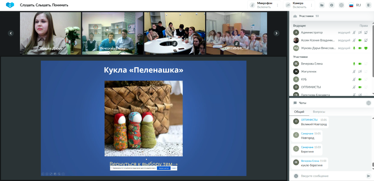 Модераторами мероприятия выступили представители РУМЦ Мининского университета: специалист по УМР 1-й категории Жукова Дарья Вячеславовна, администратор РУМЦ Назарова Екатерина Николаевна, специалист РУМЦ Цыбуцинина Ирина Евгеньевна.