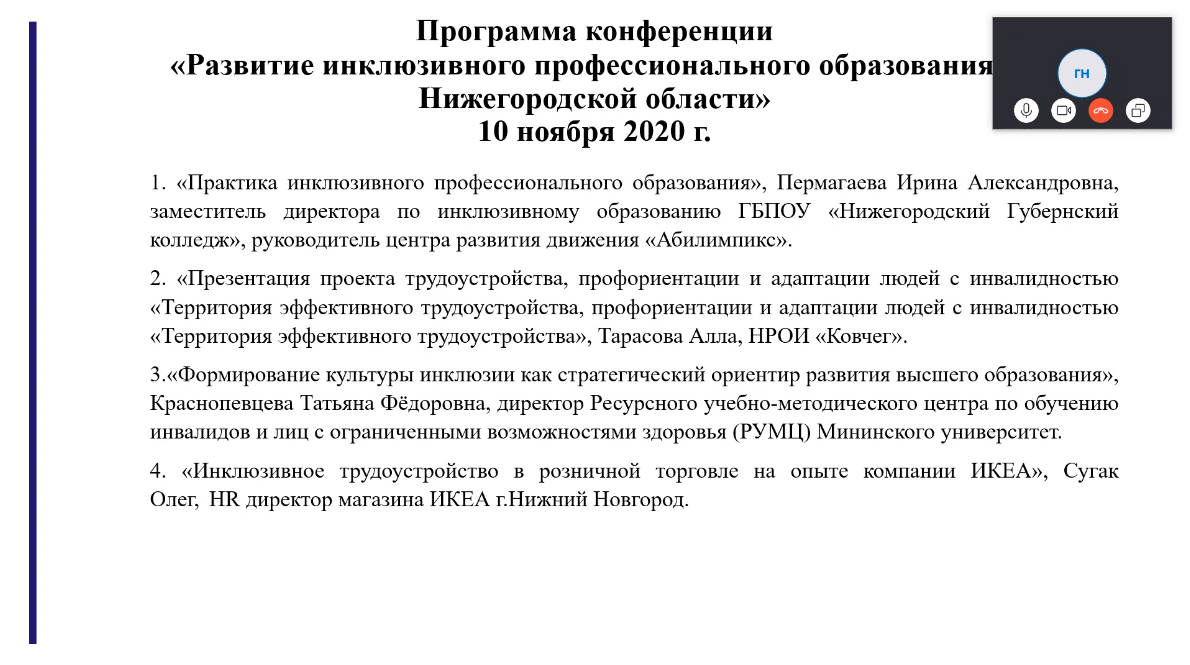 10 ноября 2020 года сотрудники РУМЦ Мининского университета приняли участие в Деловой программе V Регионального чемпионата «Абилимпикс» по профессиональному мастерству среди лиц с инвалидностью и ОВЗ Нижегородской области.
