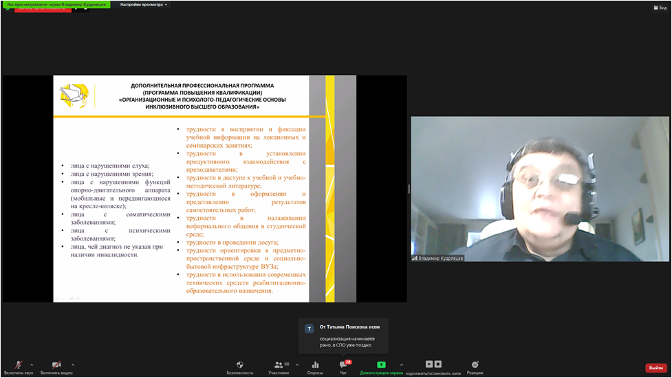 Завершилось обучение сотрудников вузов-партнеров по сетевой программе повышения квалификации «Организационные и психолого-педагогические основы инклюзивного высшего образования»