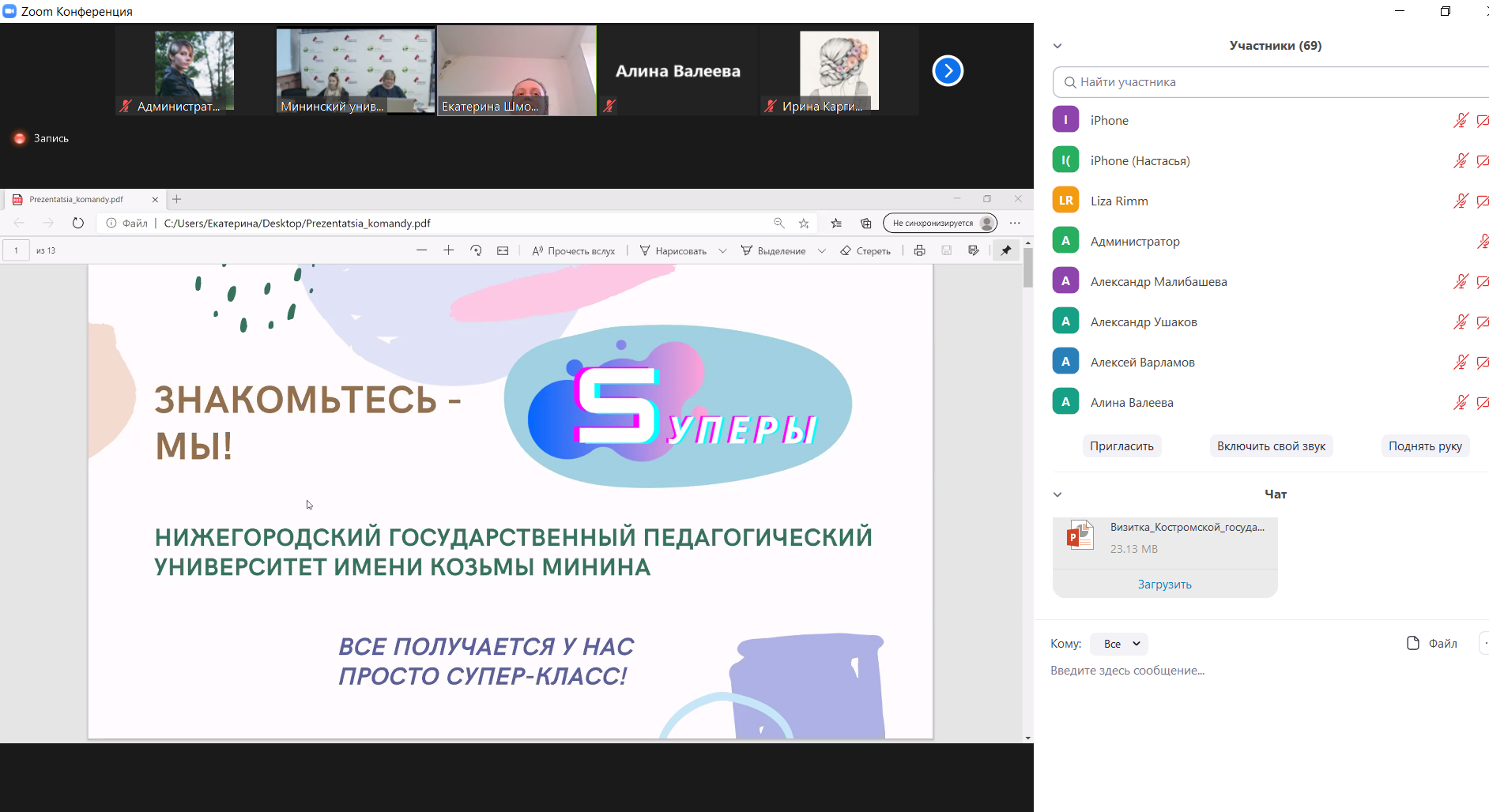 Состав команды: Шмонина Екатерина Михайловна, Суркова Ксения Денисовна, Удалова Екатерина Николаевна, Куимова Надежда Валерьевна,Чекалкина Екатерина Сергеевна, Федотов Илья Андреевич