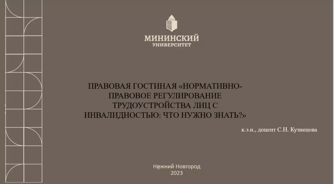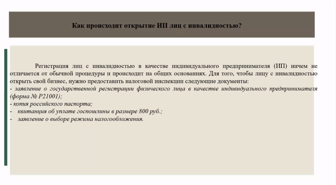 Кузнецова С.Н. в рамках выступления акцентировала внимание на правовых аспектах, регулирующих трудоустройство лиц с инвалидностью, познакомила участников с ресурсными возможностями молодежного предпринимательства и самозанятости в профессиональном становлении.