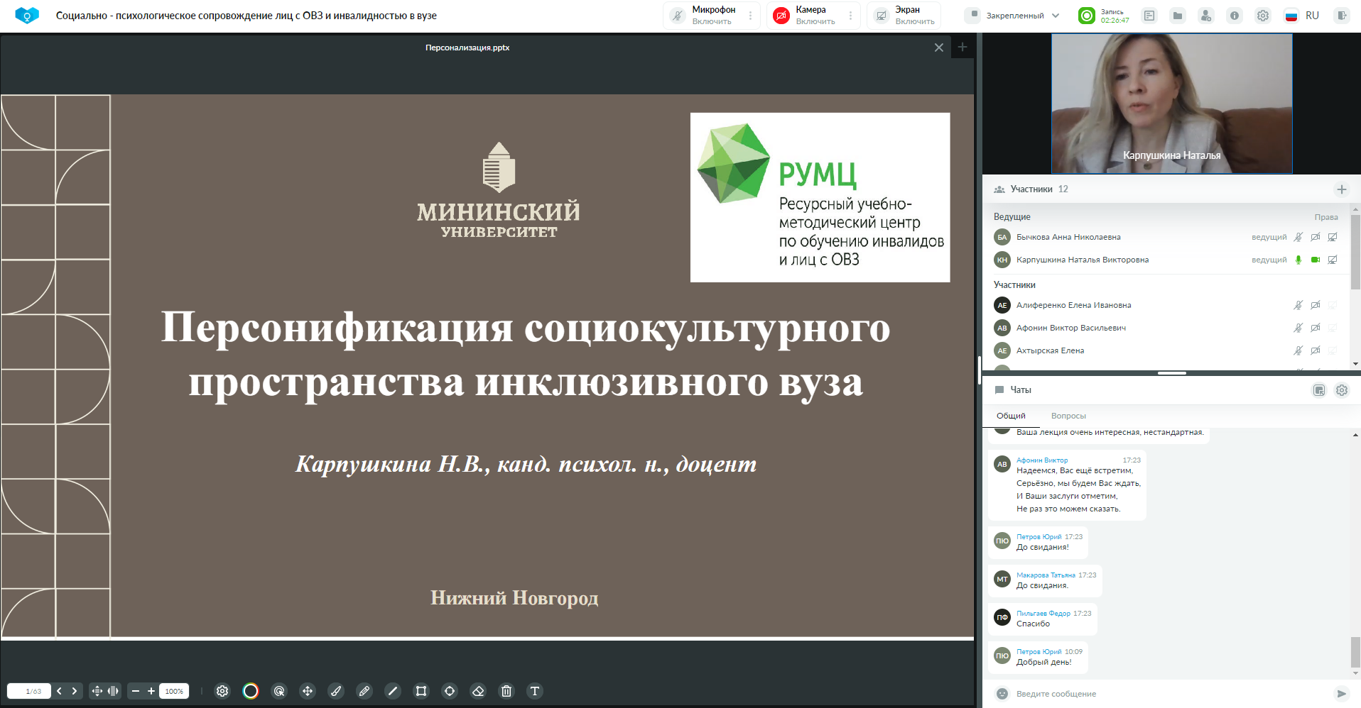 - Завершилось обучение по программе «Социально - психологическое сопровождение лиц с ОВЗ и инвалидностью в вузе» сотрудников вузов-партнеров